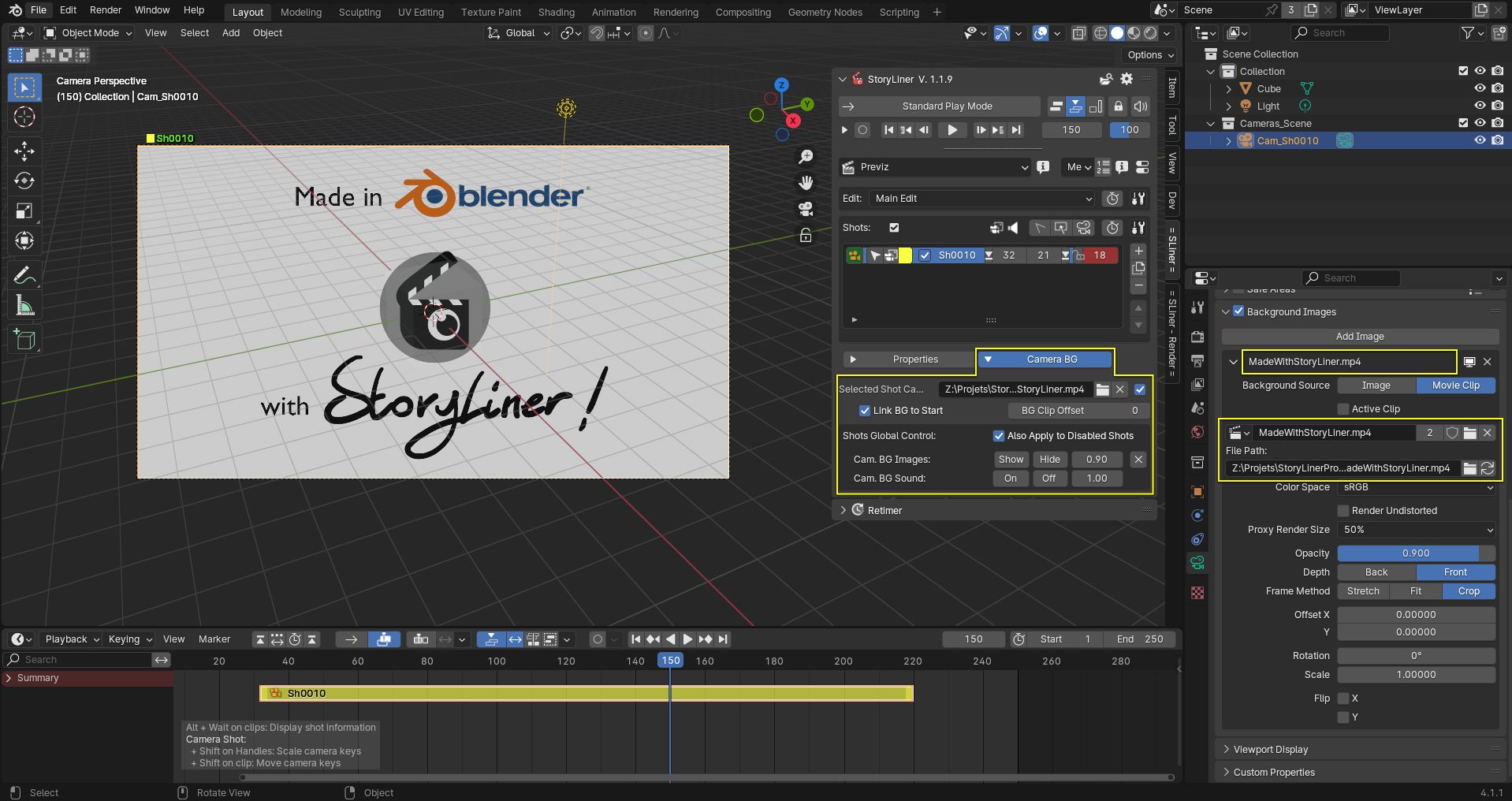 The ability to add a video or still image as a background to a camera is a standard feature of Blender. Thanks to the controls introduced to the Camera Backgrounds shot panel it becomes possible to associate them with the shot itself.In addition to some specific operators to fine tune them, this also means that videos used as background will preserve their start time and offset relatively to the shot start time, even when the shot time range is modified.