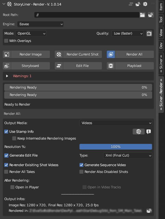 The Render panel is separated from the main StoryLiner panel, for convenience. Note that it is nevertheless possible to make it a sub-panel (see Rendering Settings in the add-on Preferences)