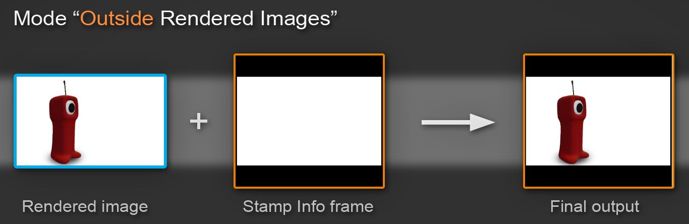 In this second mode the metadata are written outside the rendering output image, making the final composited image higher than the resolution specified in the Blender Rendering panel.