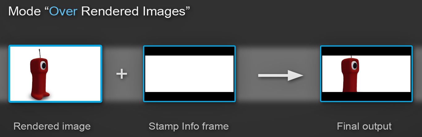 In this mode the black bands on which metadata text will be written directly on the image. It will then hide a part of it at the top and bottom. The final image still have the same resolution than the rendering output image.